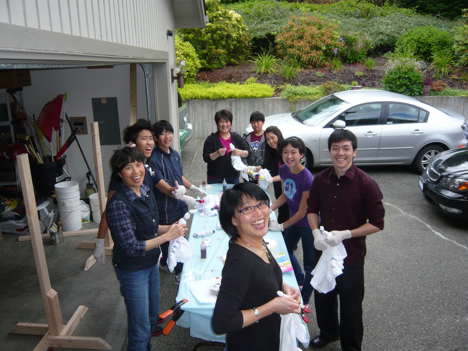 Anyway here are some photos of the team as they tie-dye shirts and socks.
